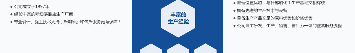 本公司位于四川省綿竹市漢旺鎮,是自1997年成立以來至今,已發展成為四川生產經驗豐富的精細磷酸鹽系列產品專業生產廠家,地理位置優越,毗鄰四川新市和拱星工業園區,與什邡磷化工生產基地交相輝映。主要生產產品有:磷酸二氫鉀、酸式磷酸鉀、磷酸氫二鉀、磷酸脲、磷酸二氫鈉、磷酸氫二鈉、磷酸三鈉、磷酸二氫銨、磷酸氫二銨等系列磷酸鹽產品。